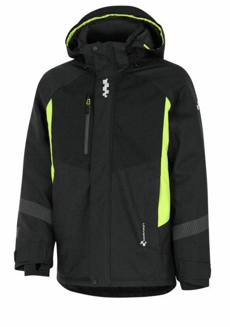 Vinterjakke i vindtett, vanntett og pustende stoffkvalitet. Alle sømmer er teipet. Vattert fôr med høy isolasjonsevne. Vanntette glidelåser i siden for ventilering. Brystlomme med ID-kortlomme og vanntett glidelås. Mobiltelefonlomme bak klaff i front. To sidelommer med glidelås og varmt fôr innvendig. Avtagbar og justerbar hette med glidelås. Segmenterte reflekser rundt ermer og på rygg. Pulsvarmere med tommelgjennomgrep og justering rundt håndledd. Vannsøyle: 20.000mm Pusteevne: 22.000/m²/24h. EN 343 4:1 X EN 342