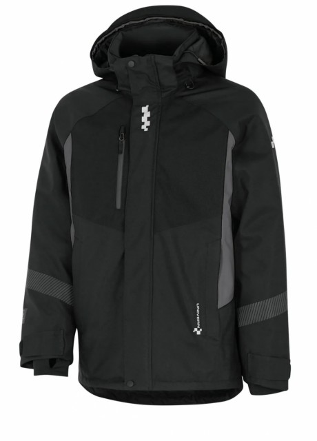 Vinterjakke i vindtett, vanntett og pustende stoffkvalitet. Alle sømmer er teipet. Vattert fôr med høy isolasjonsevne. Vanntette glidelåser i siden for ventilering. Brystlomme med ID-kortlomme og vanntett glidelås. Mobiltelefonlomme bak klaff i front. To sidelommer med glidelås og varmt fôr innvendig. Avtagbar og justerbar hette med glidelås. Segmenterte reflekser rundt ermer og på rygg. Pulsvarmere med tommelgjennomgrep og justering rundt håndledd. Vannsøyle: 20.000mm Pusteevne: 22.000/m²/24h. EN 343 4:1 X EN 342